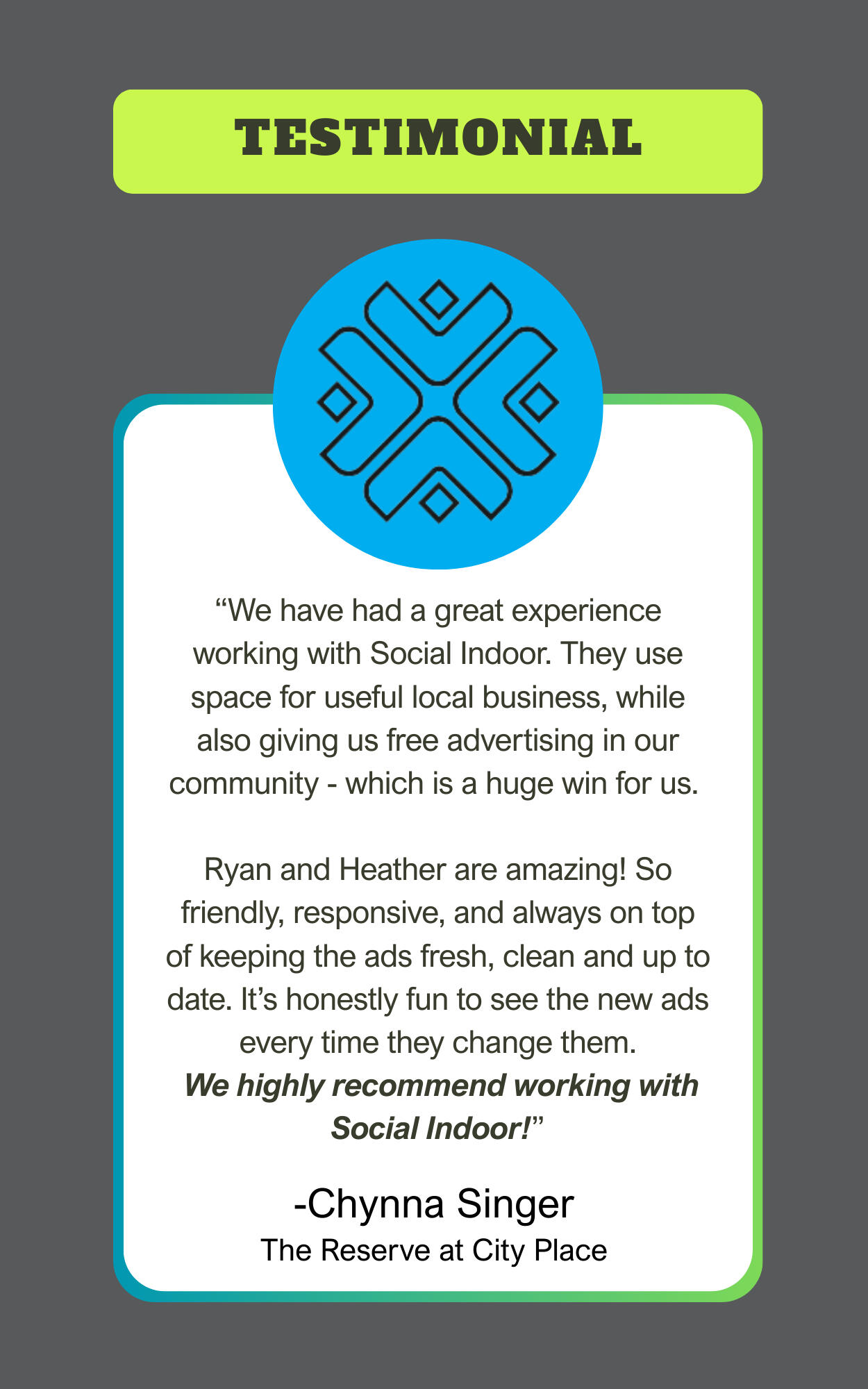 You receive 25% worth of ad space at no charge in our local network, giving your community exposure across popular venues. Our professional team will even design the ads for you at no cost.