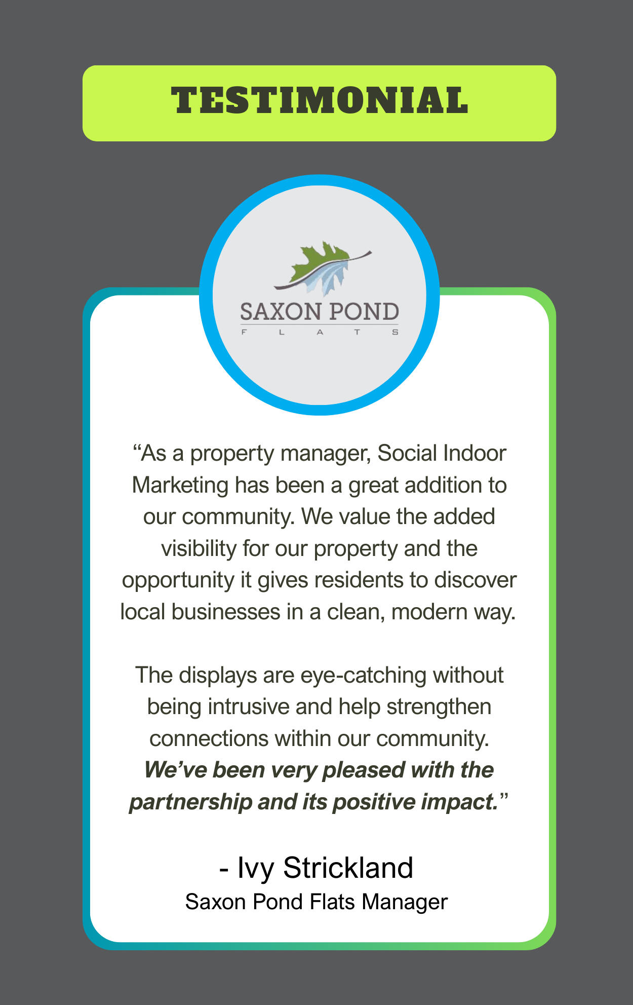 We install print frames or a flatscreen TV your mail area, ensuring consistent visibility for residents.